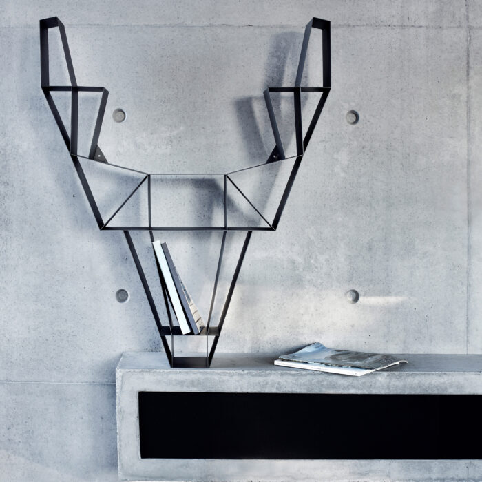 Die weiße Lume Garderobe aus Stahl ist in einem feinen und filigranen Metallrahmen konstruiert.