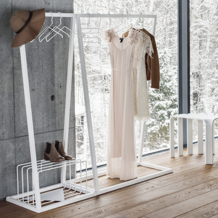 Lume Garderobenständer aus weißem Stahl: eine minimalistische und zeitlose Garderobe